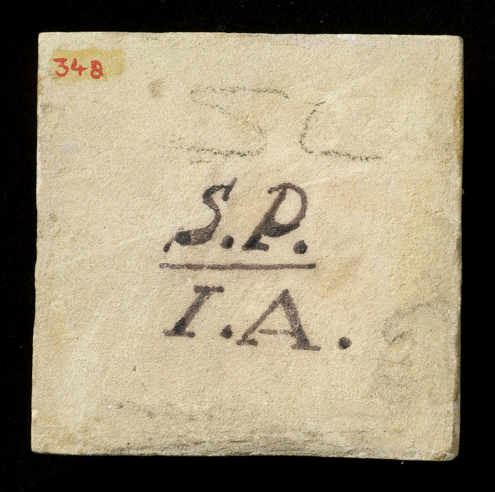 Tegel van aardewerk in druktechniek, deels met hand ...