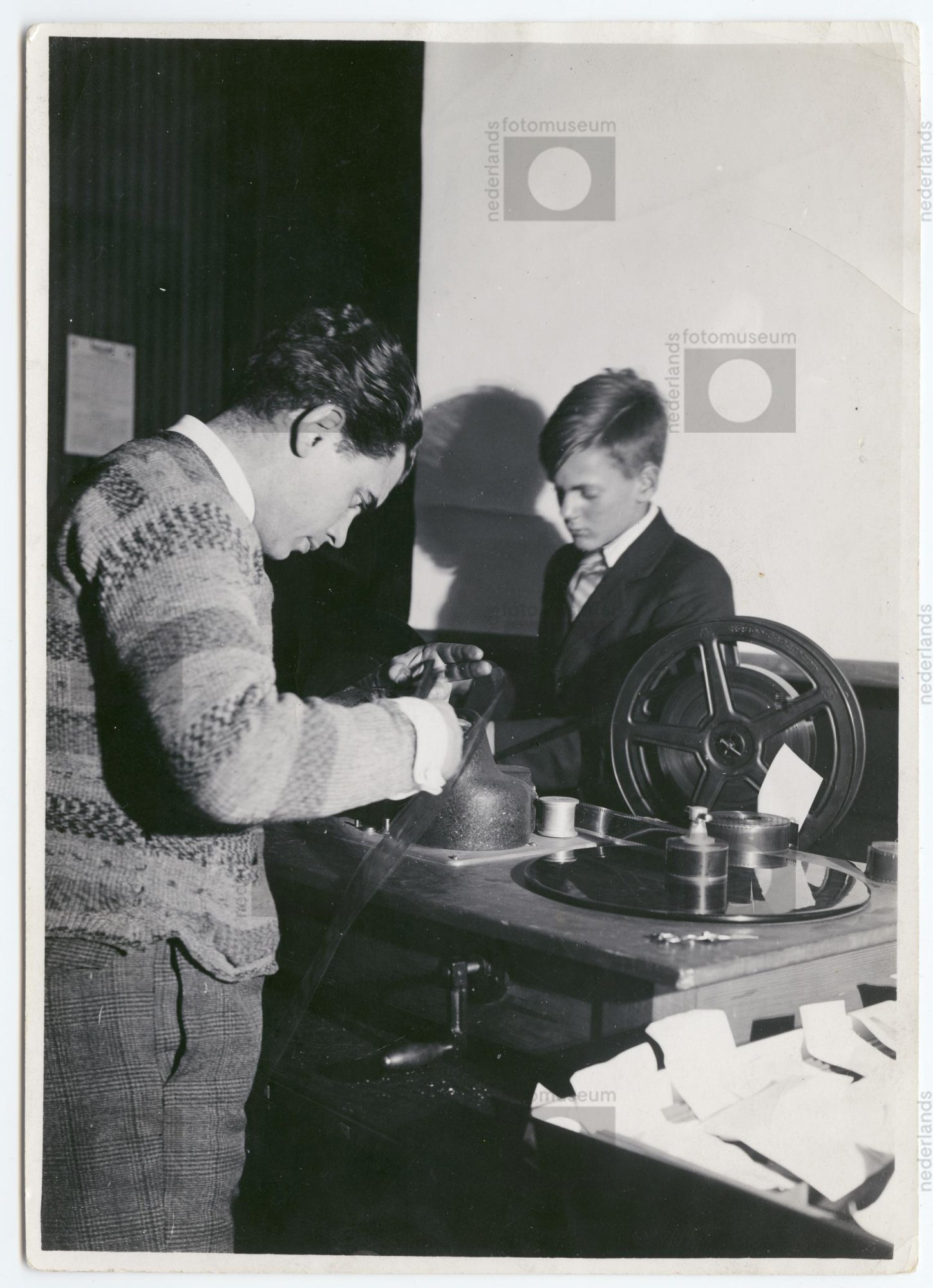 Joris Ivens en John Fernhout tijdens montage 'Re...