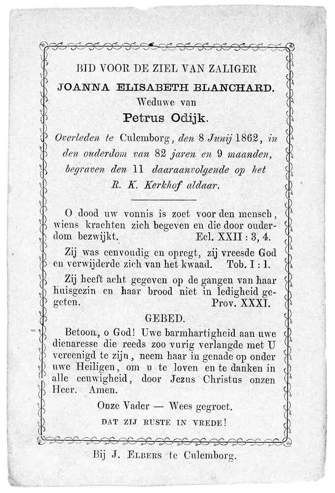 bidprent voor Joanna Elisabeth Blanchard. Geboren 17...
