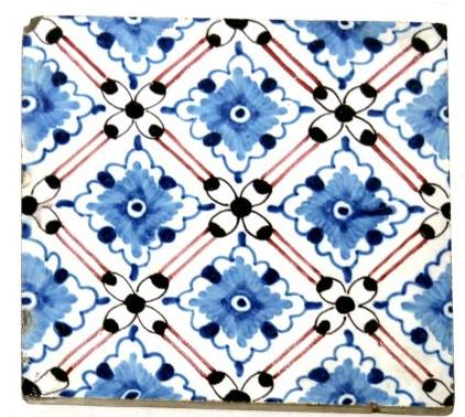 Ornamenttegel, met tapijt ruit in blauw geel en rood