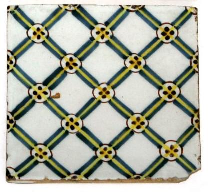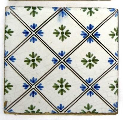 Ornamenttegel, met fijne ruit in groen met blauw in ...