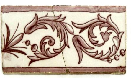 Mangaan randtegel. Kolomhalfje, borduursteek.