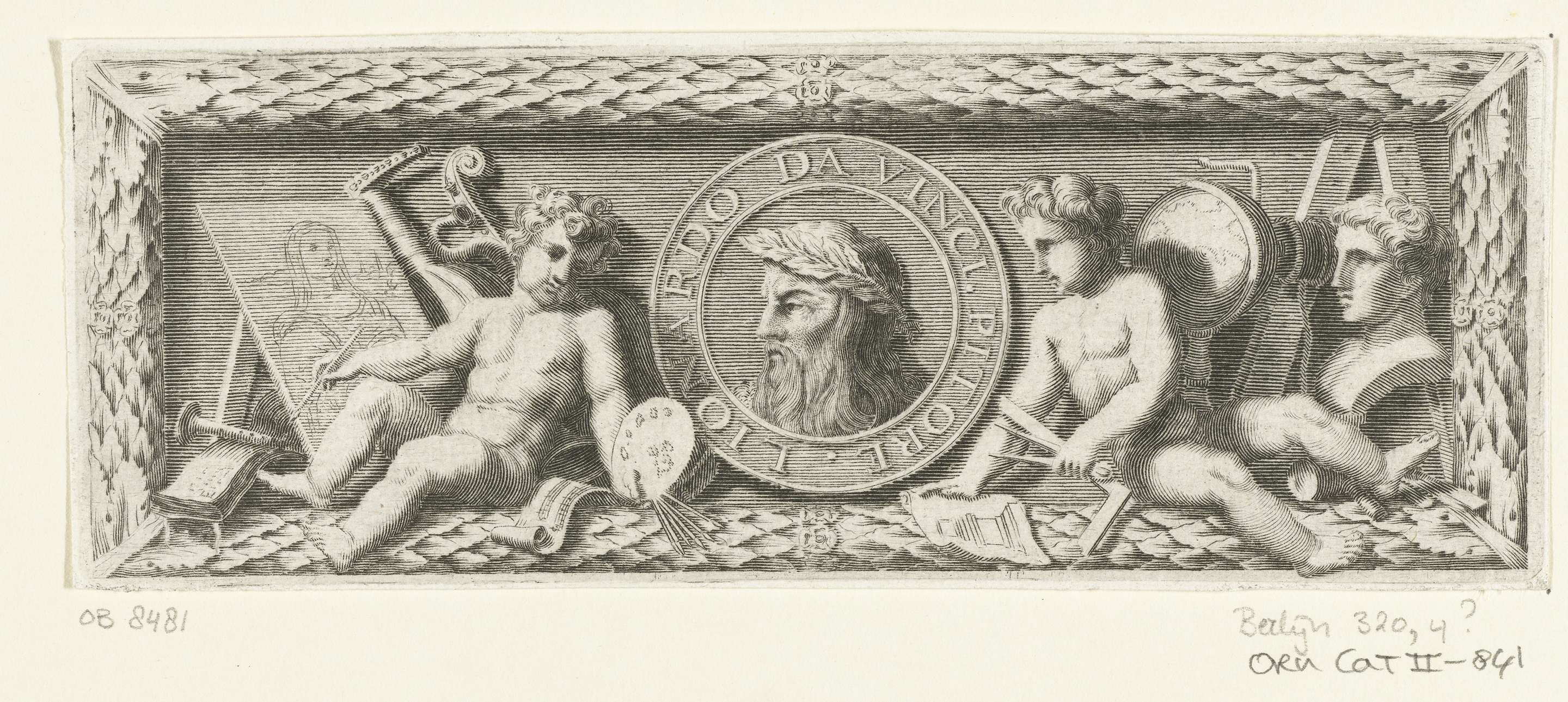 Fries met twee putti die portretbuste tekenen