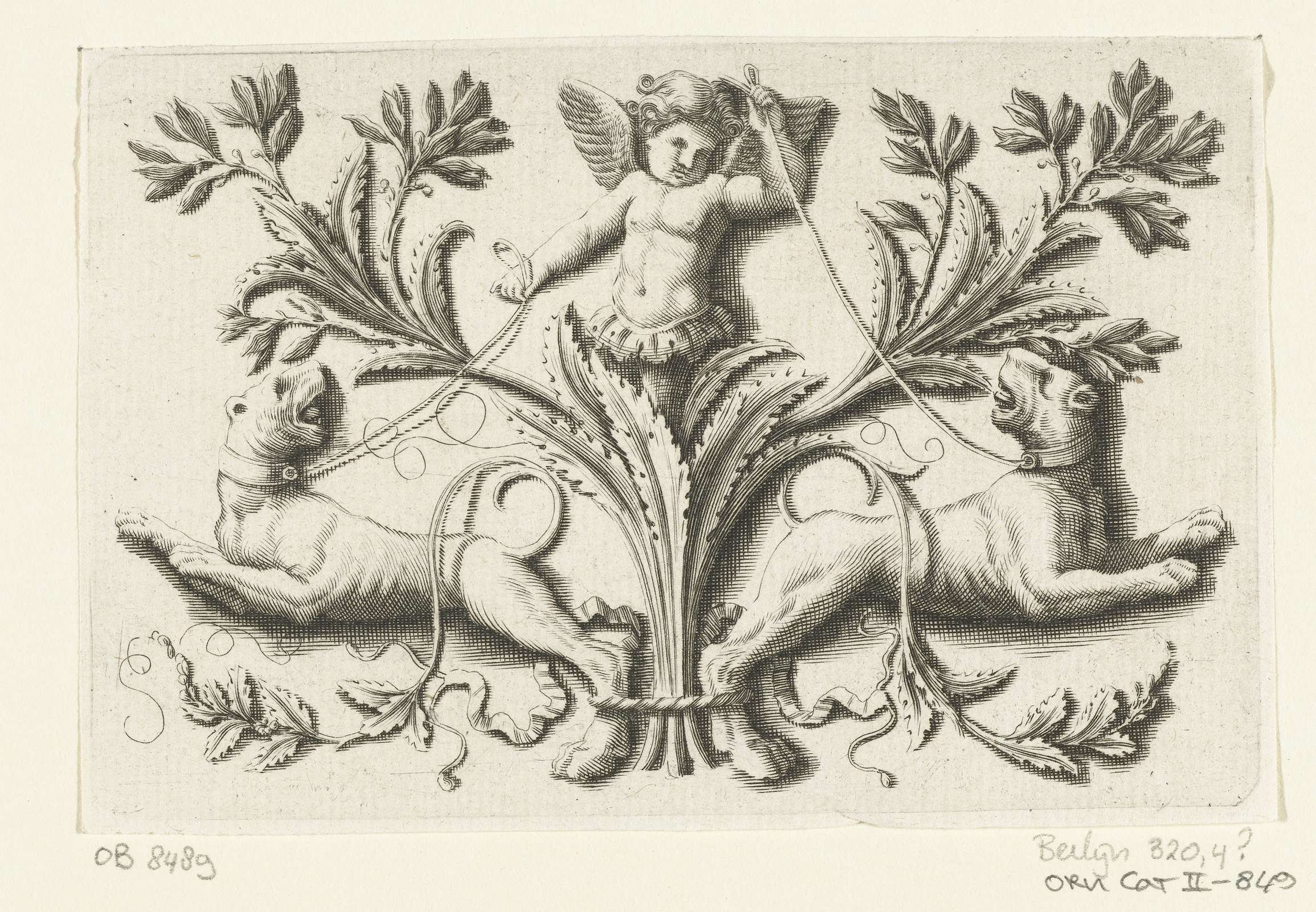 Vignet met twee leeuwen en een kind