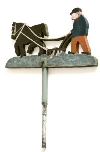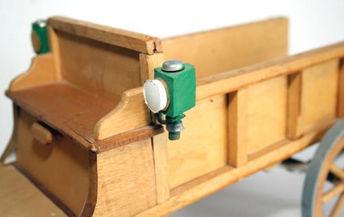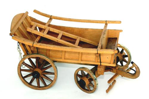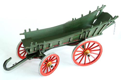 Miniatuur boerenwagen met korte naar voren gekrulde ...