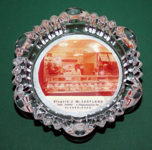 Asbak Slagerij Leeflang Glazen ronde asbak met dikk...