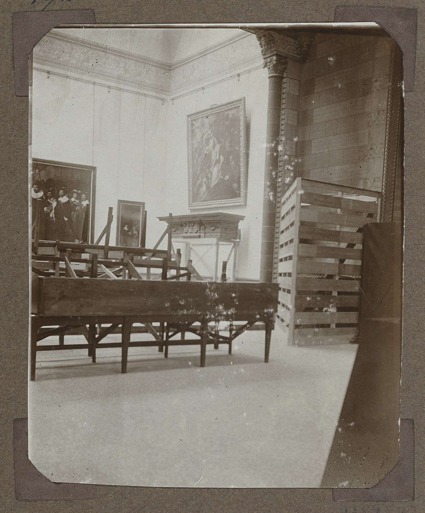 Nachtwachtzaal als opslagruimte tijdens de verbouwin...