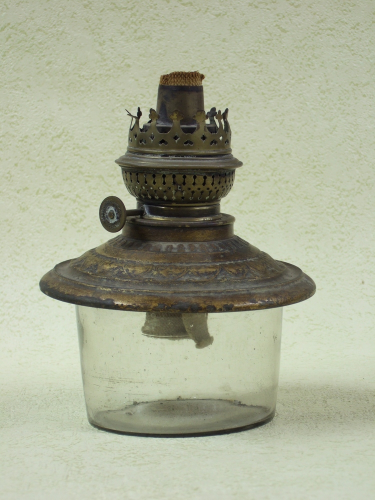 olielamp, bestaande uit glas en metaal, afkomstig ui...
