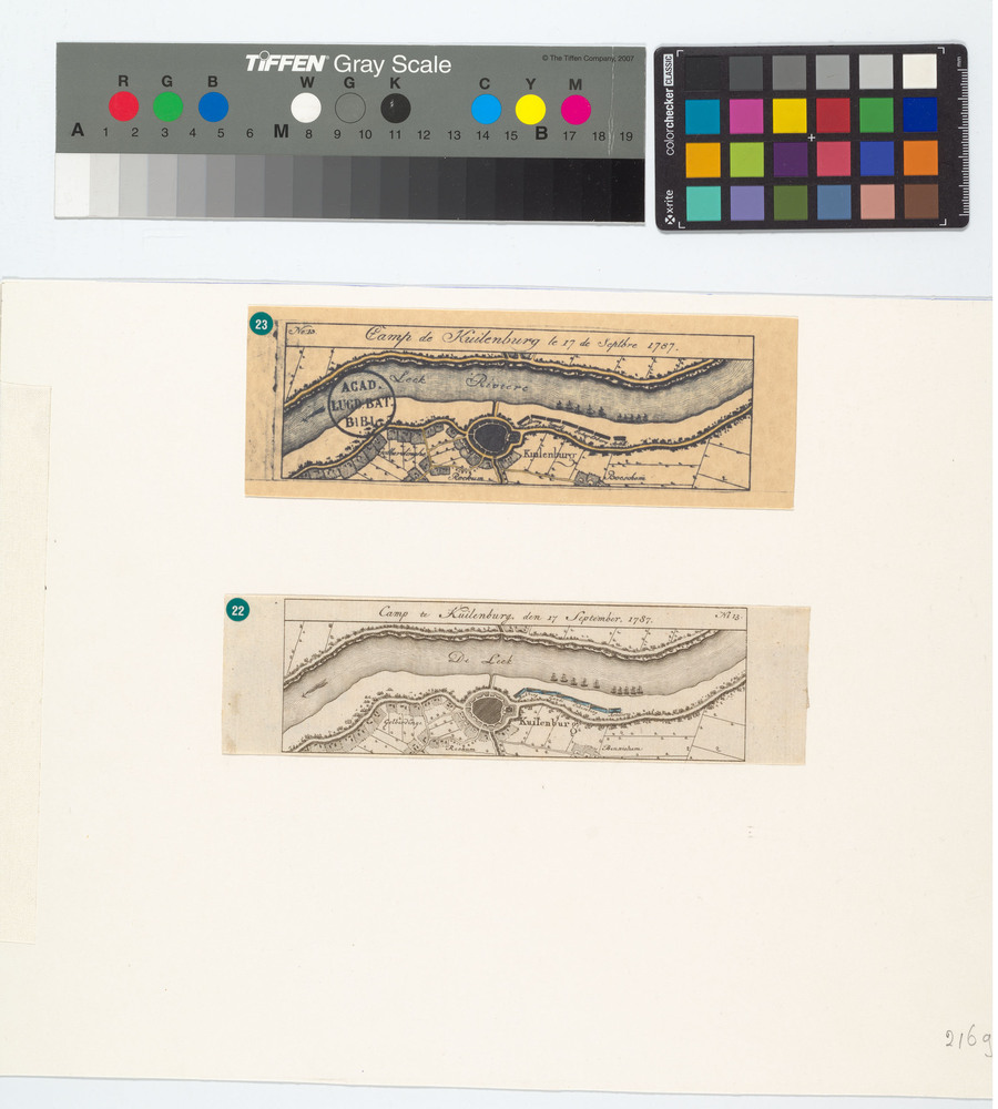 Plattegrond van rivier de Leck en Kuilenburg; Camp t...