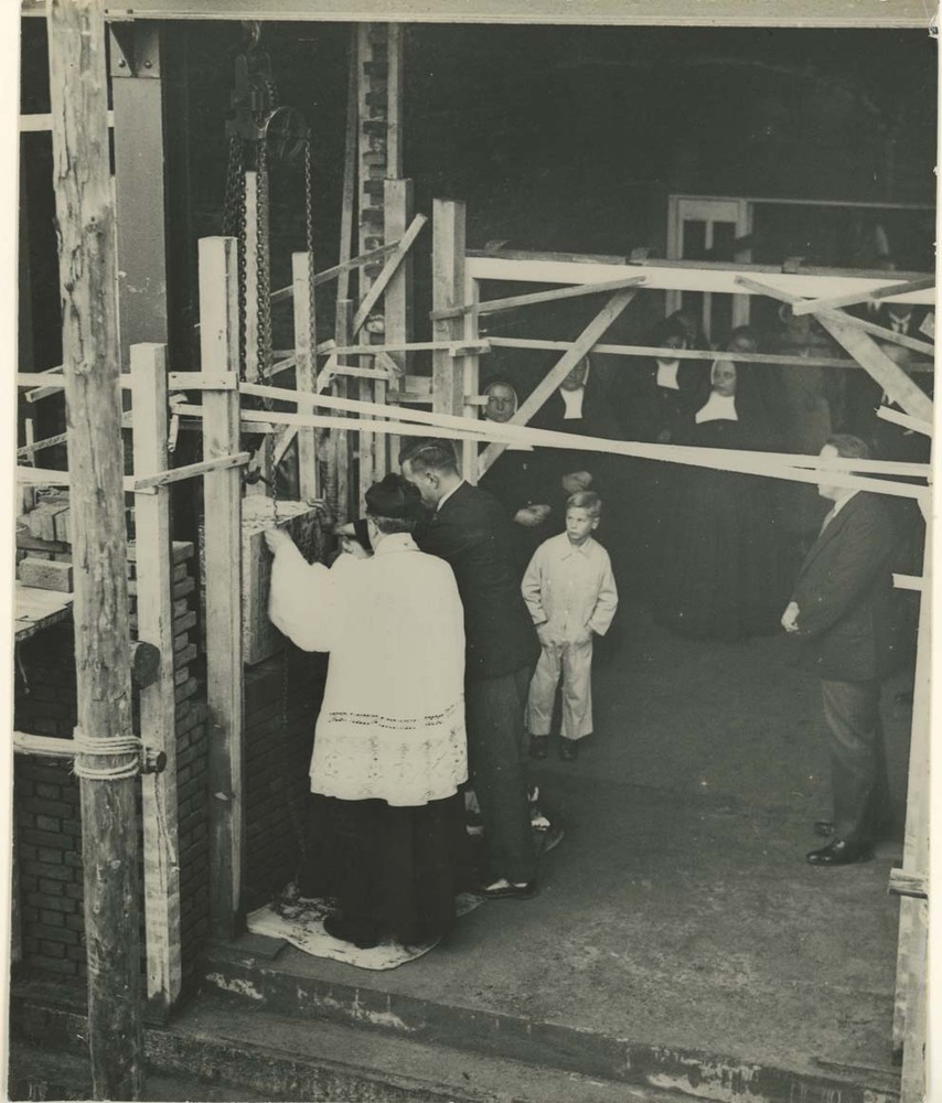 Foto, voorstellende eerste steenlegging Barbaragesti...