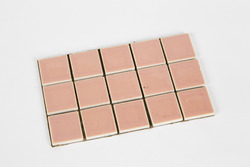 Staal van vijftien keramieken tegeltjes (roze)