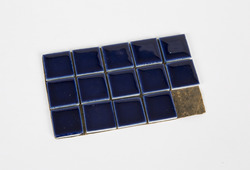 Staal van veertien keramieken tegeltjes (donkerblauw)