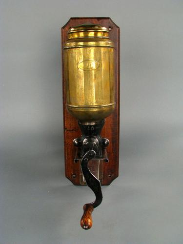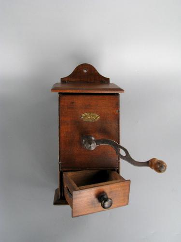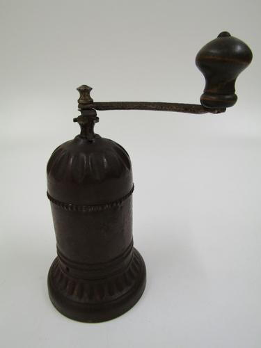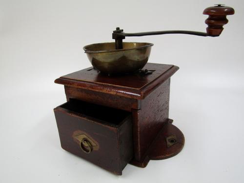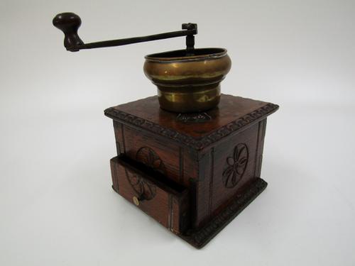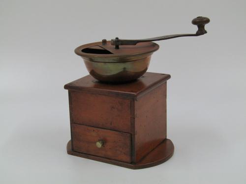Houten winkelkoffiemolen met vaasvormige messing vul...