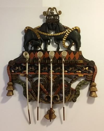 Pijpenrek voor aan de wand met drie paarden en 1721