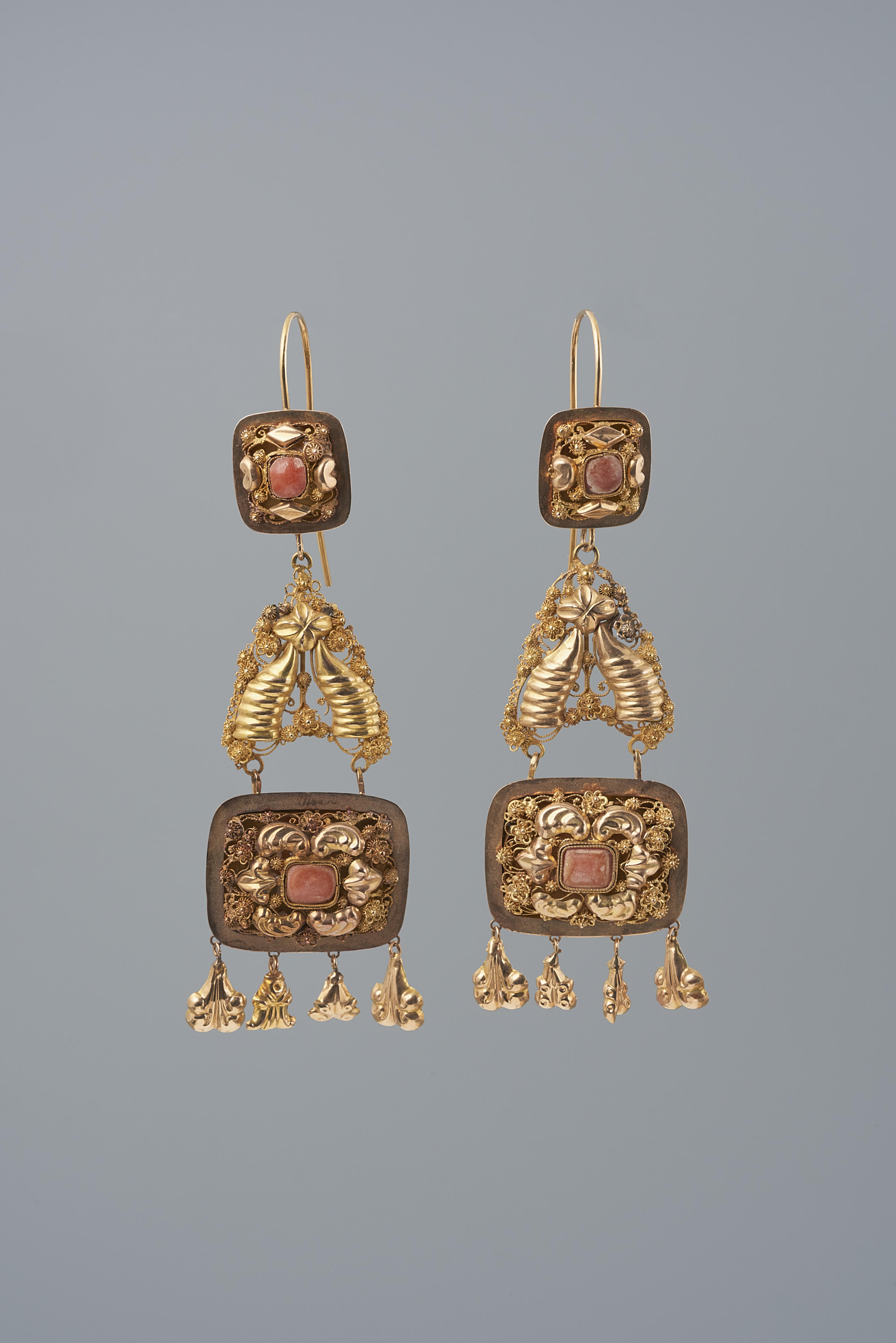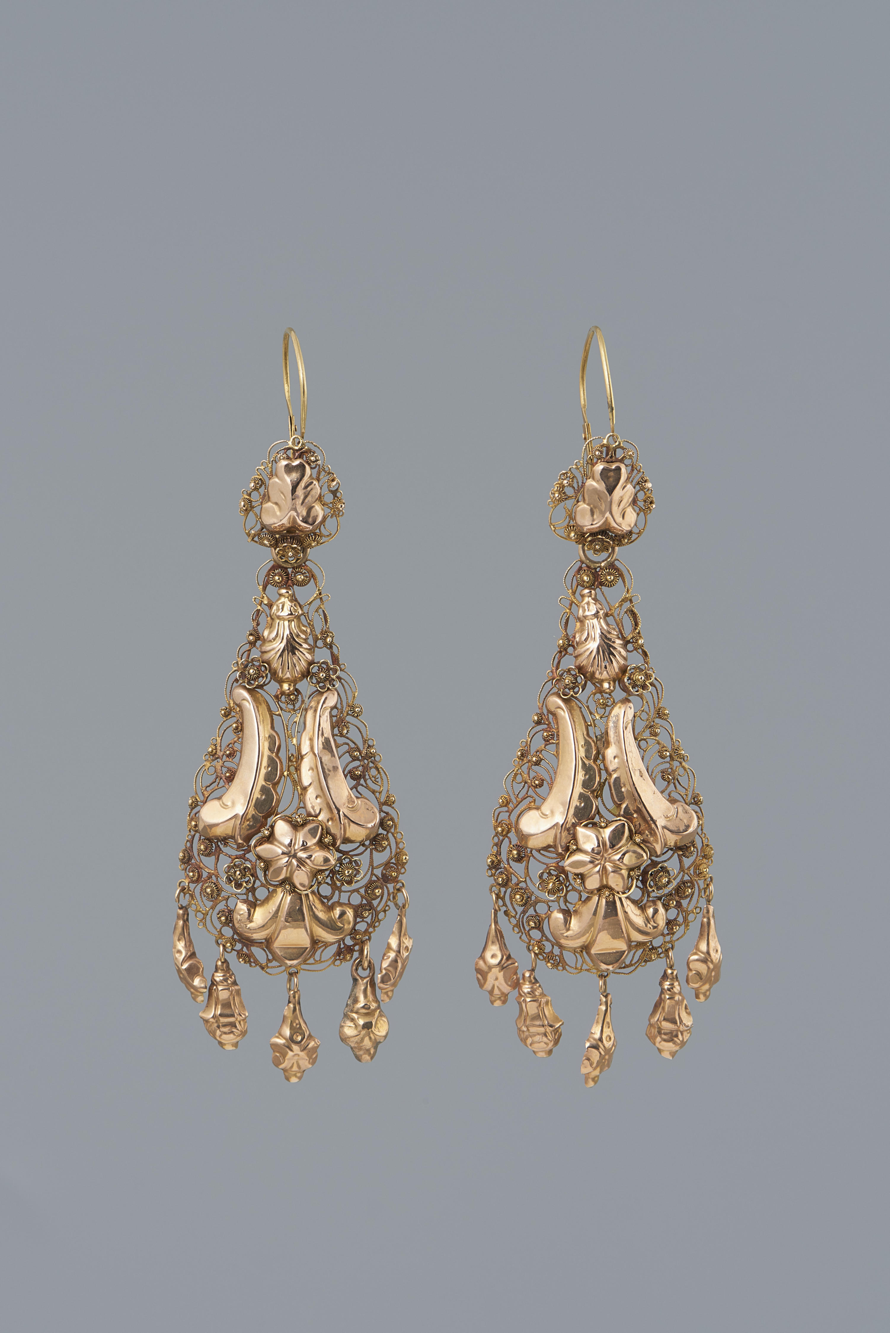 Paar gouden oorbellen, provincie Groningen, circa 1870
