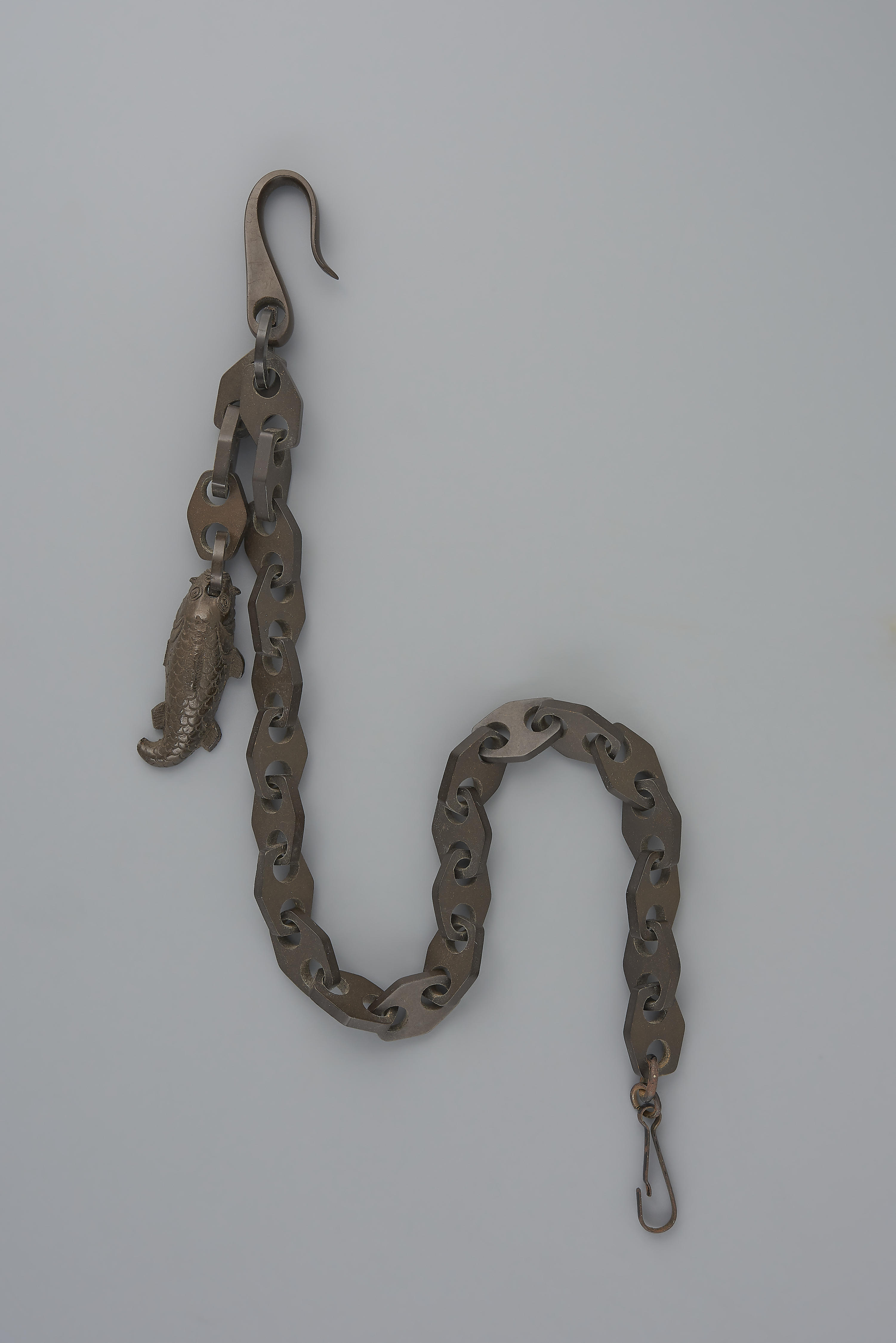Houten horlogeketting met vis, vermoedelijk 1800–1900
