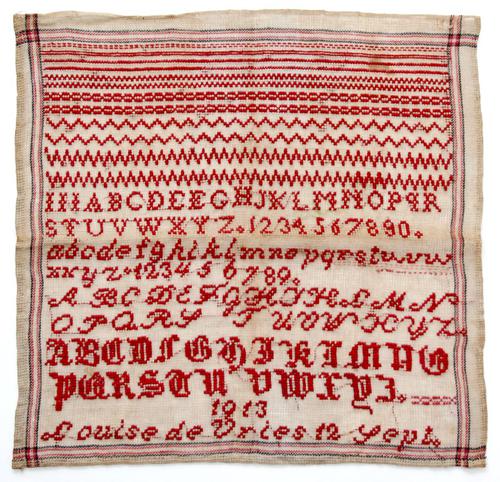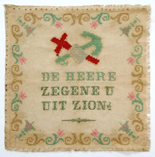 Borduurwerk Oefenlap, stramien. 1913 Louise de Vries...