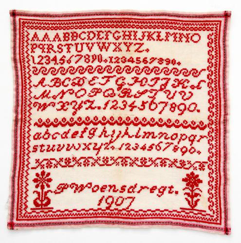 Borduurwerk Oefenlap katoen. P. Woensdregt. 1907