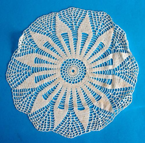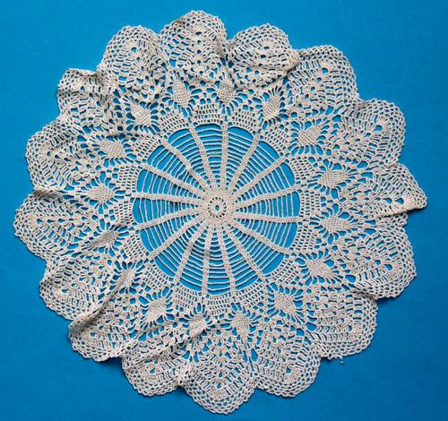 Haakwerk, wit rond katoenen kleedje met zeven wiel/ ...