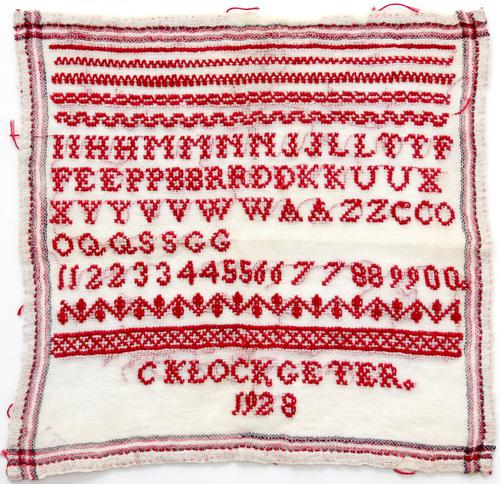 Borduurwerk Oefenlap, stramien. C KLOCKGETER. 1928
