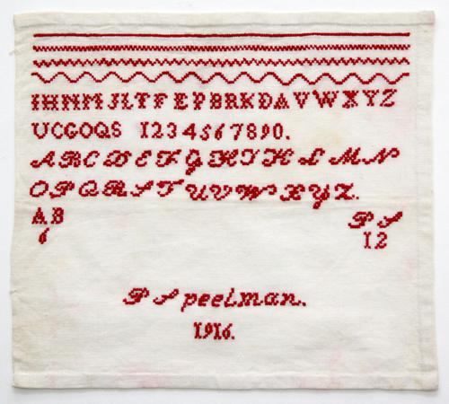 Borduurwerk Oefenlap katoen. P Speelman. 1916