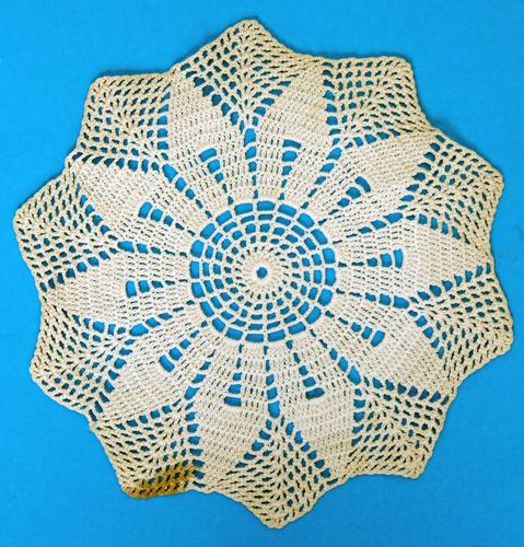 Haakwerk, wit rond katoenen kleedje met twaalf naar ...