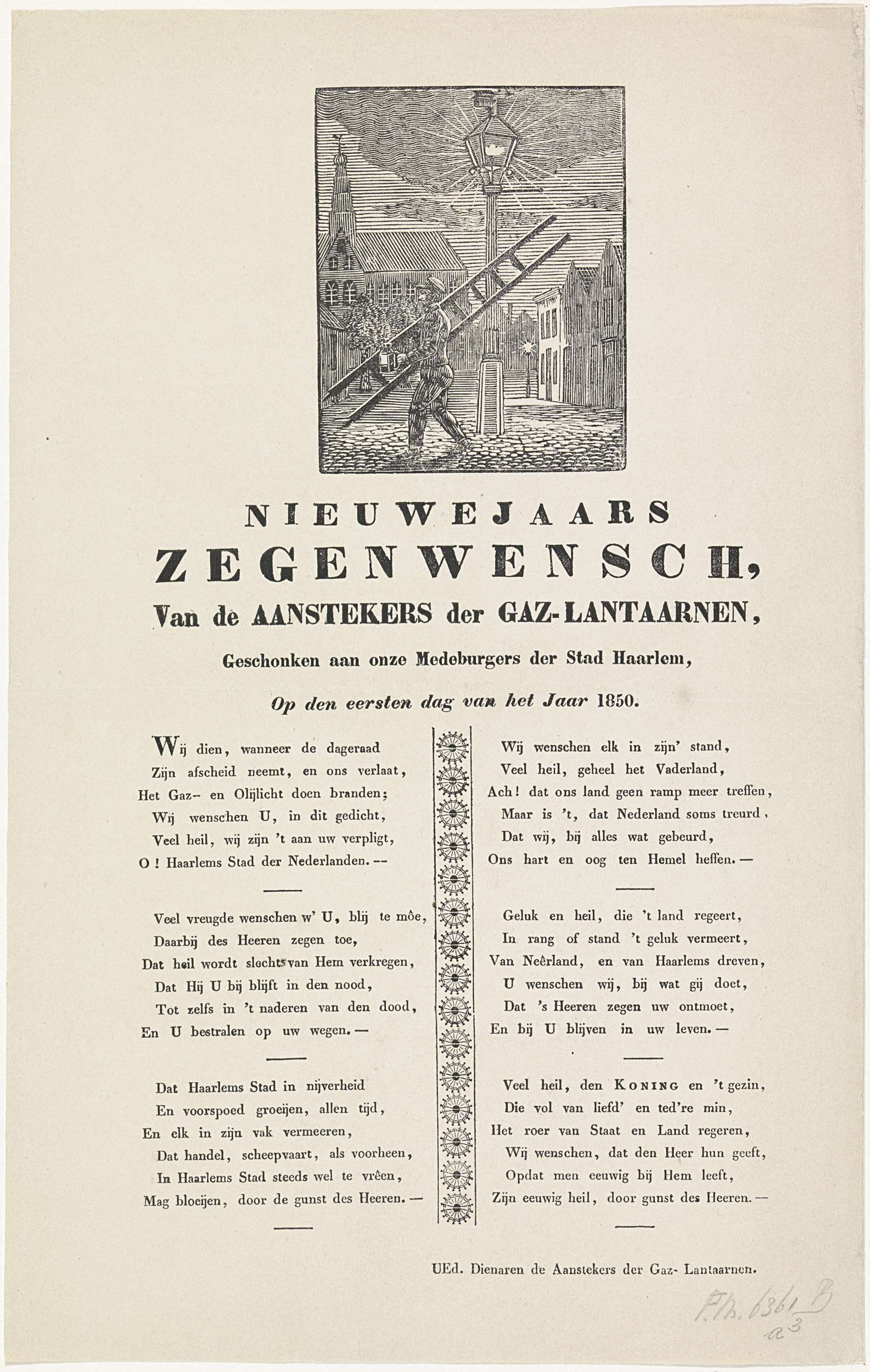 Nieuwjaarswens van de gaslantaarnopstekers van Haarl...