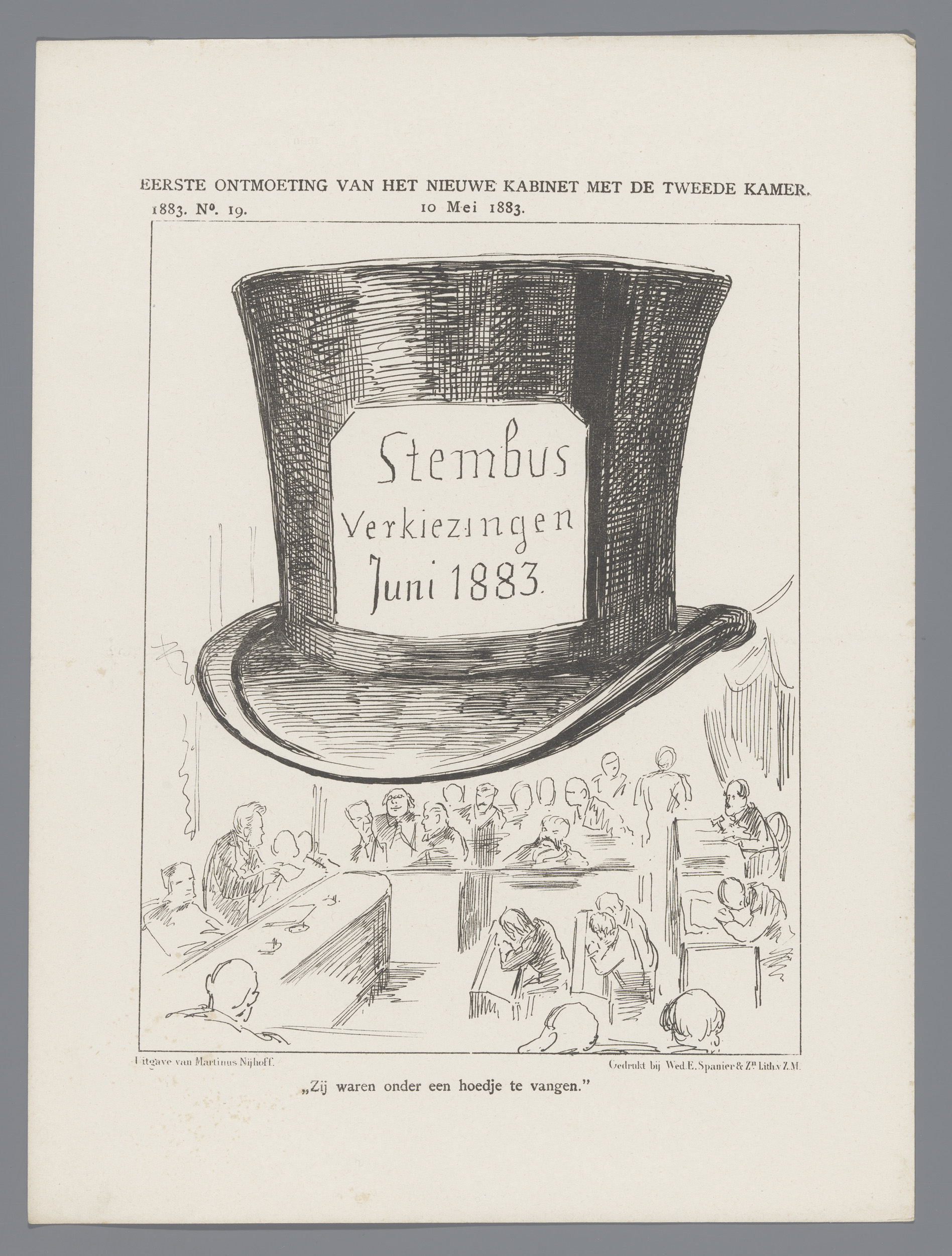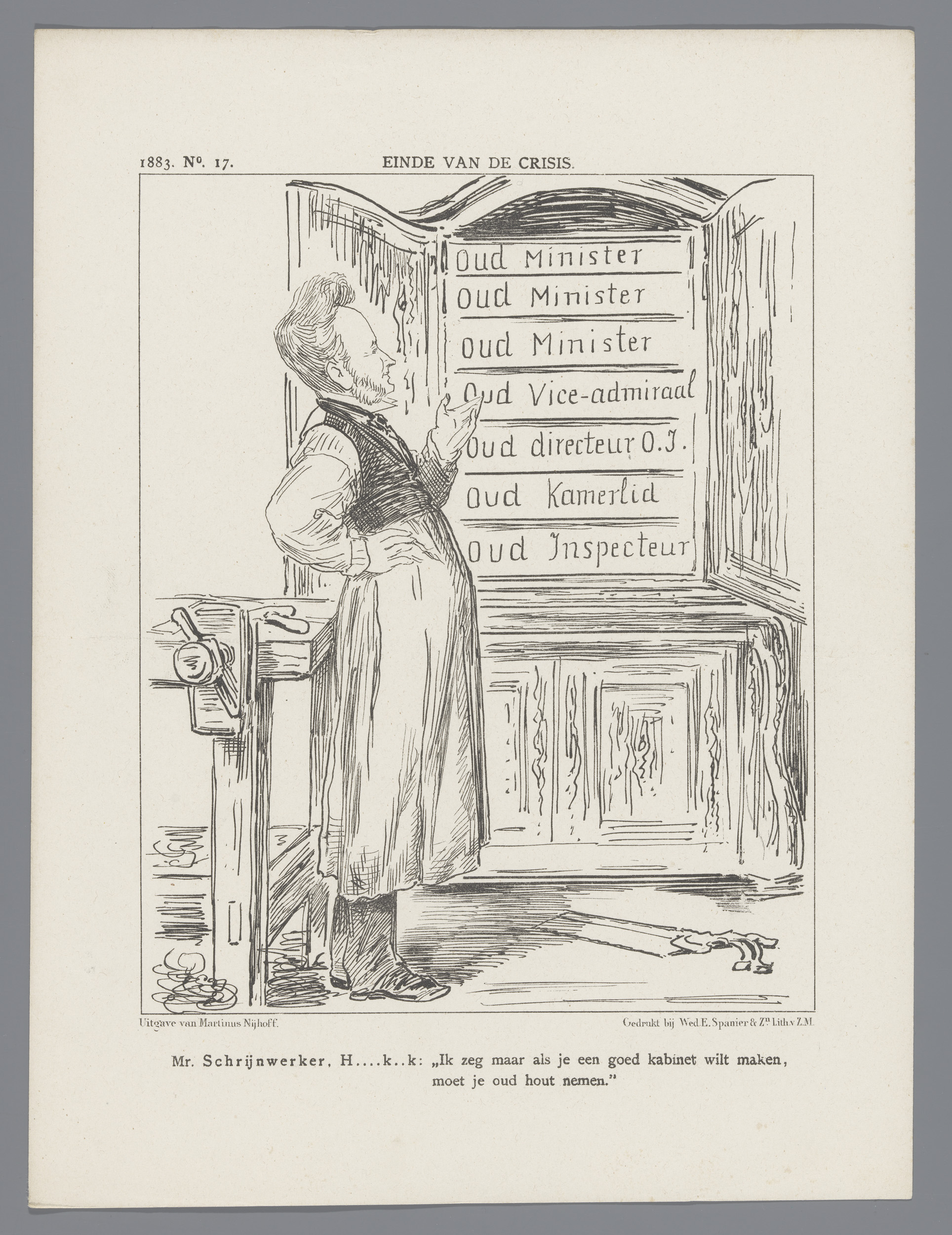 Spotprent met het nieuwe kabinet Heemskerk, 1883