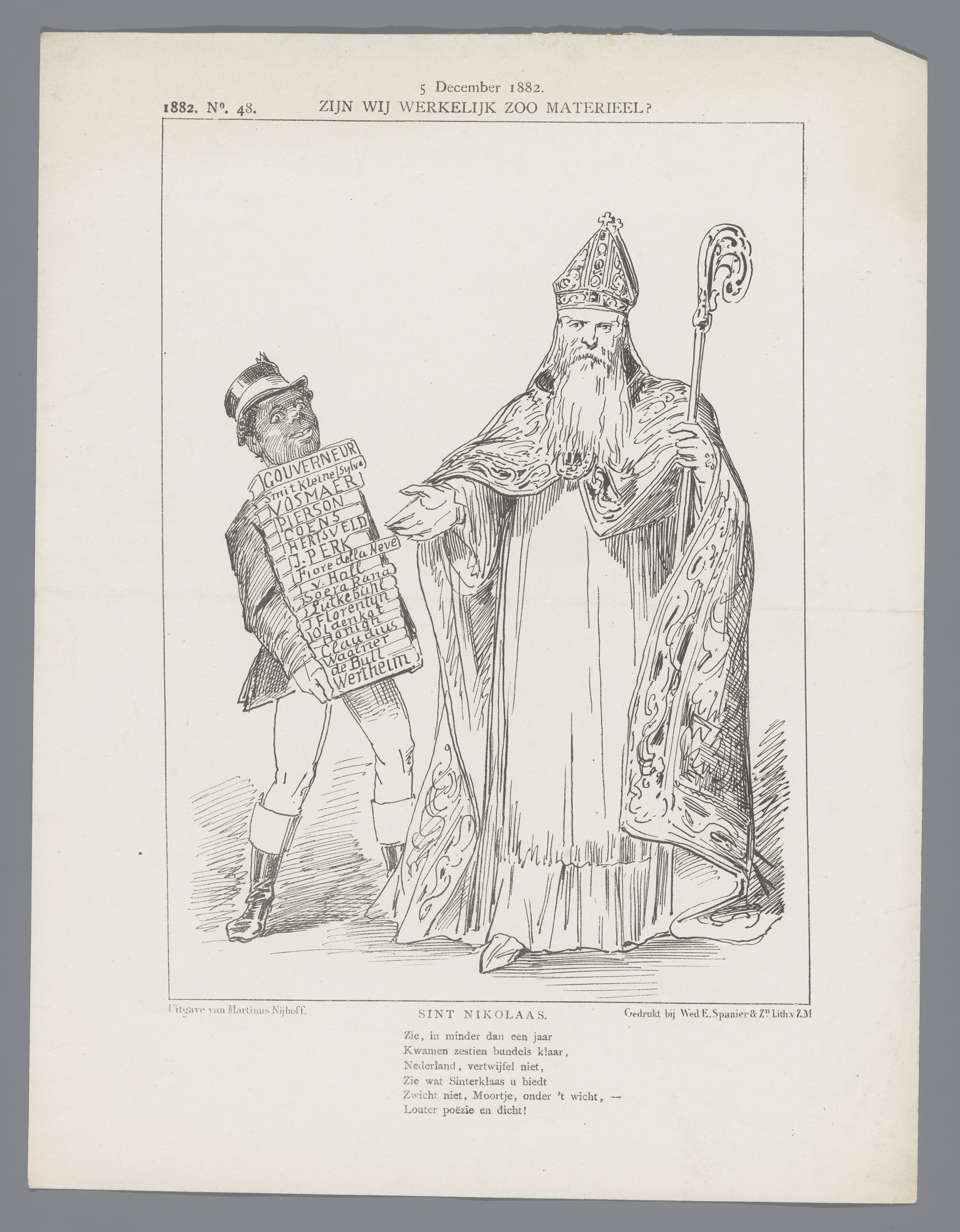 Spotprent met Sinterklaas en Zwarte Piet, 1882