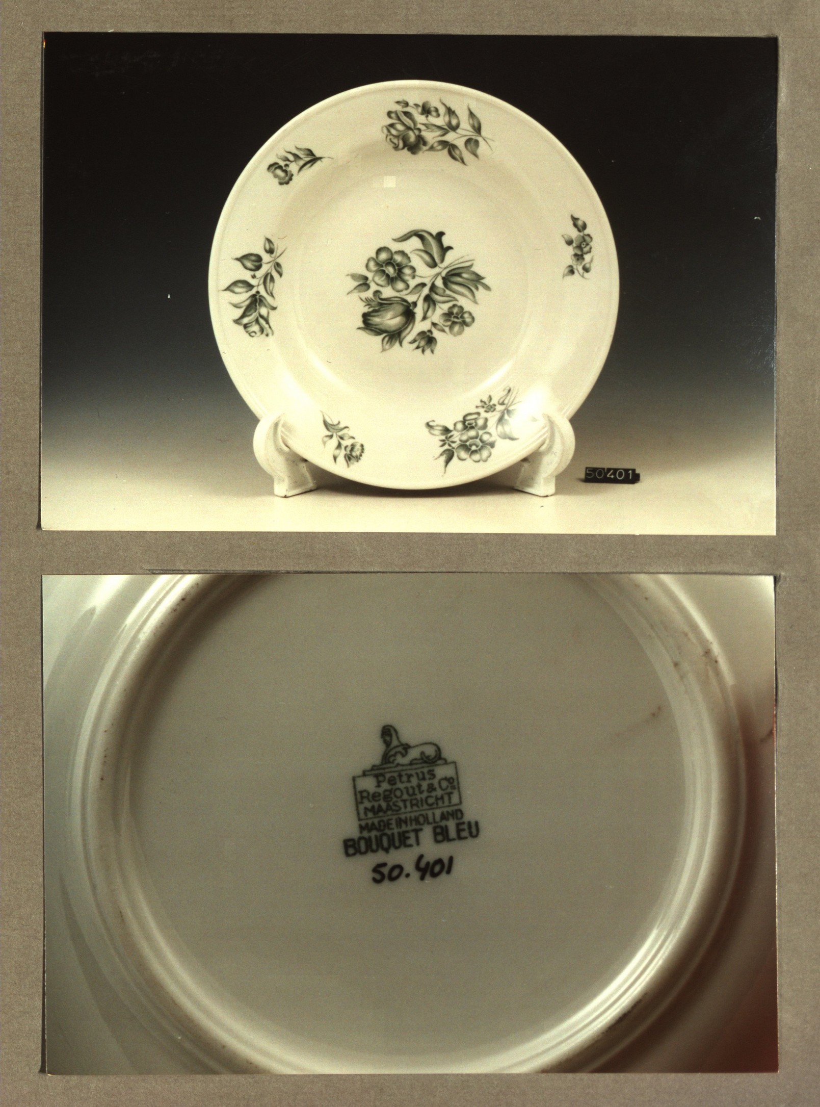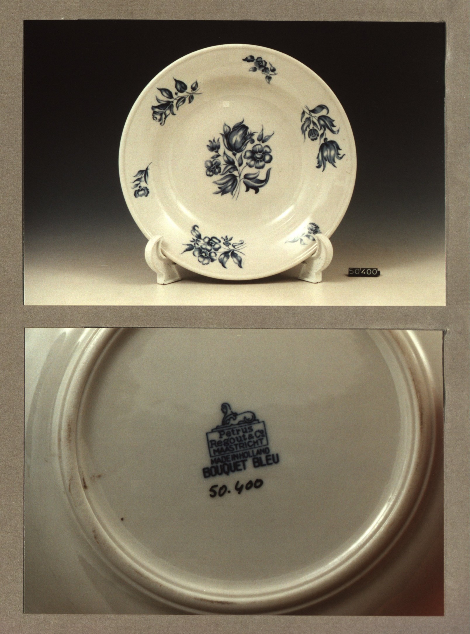 Diep bord, model H met decor Bouquet bleu