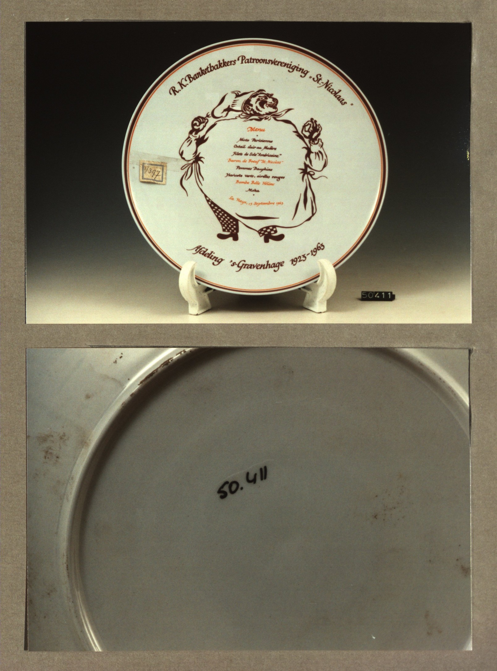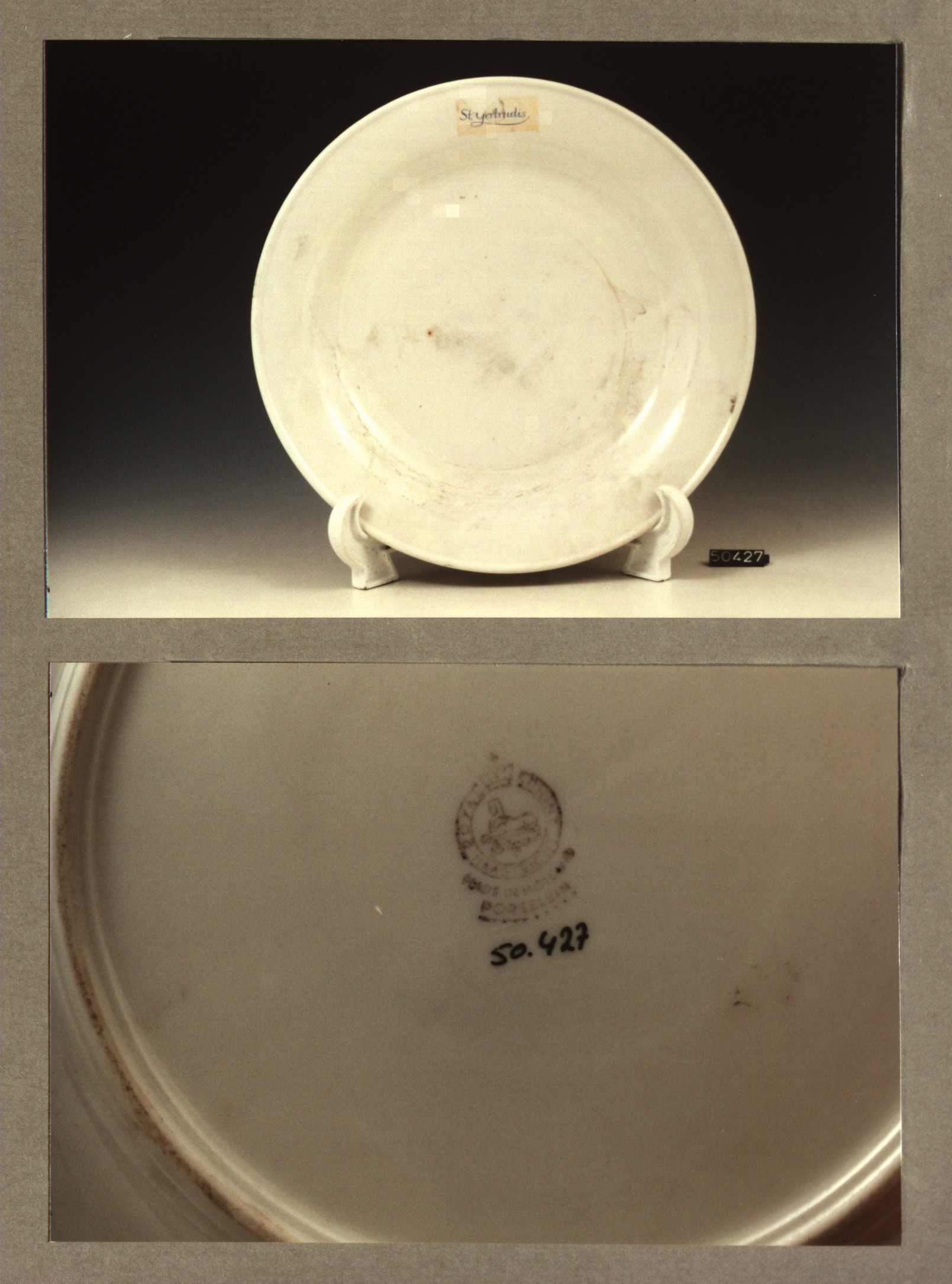 Plat bord, model H met decor St' Gertrudes