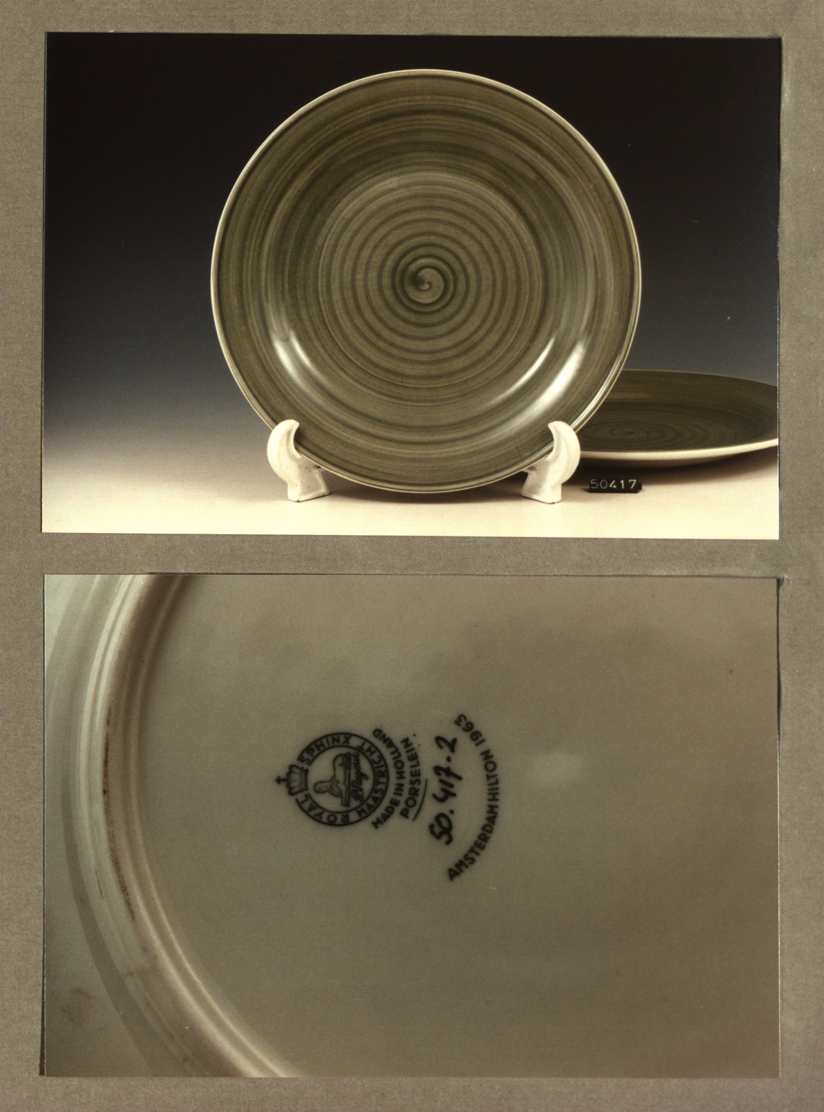 Plat bord, model H/monster met decor Hilton hotel Am...