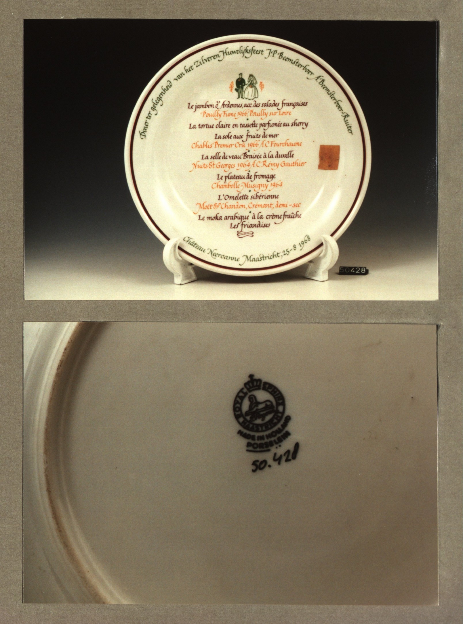 Plat bord, model H met decor Zilveren huwelijksfeest...