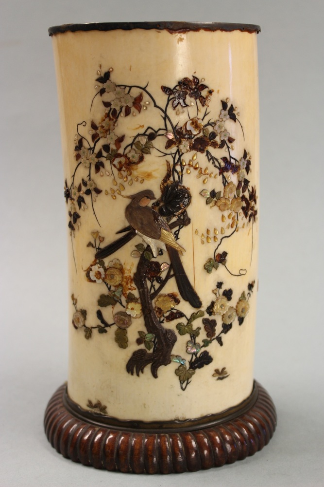 Ivoren beker met decoratie van paarlemoer