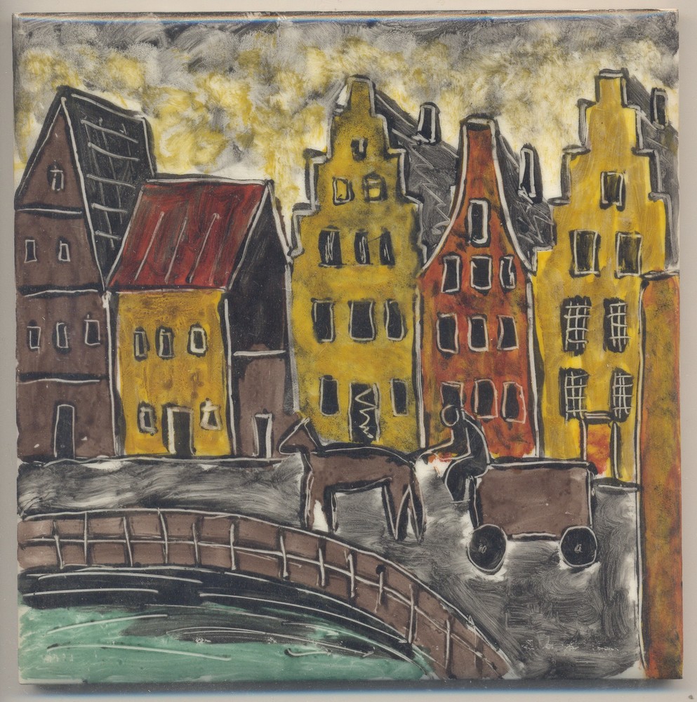 Tegel met Amsterdams stadsgezicht, geschilderd door ...