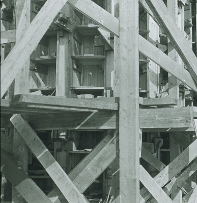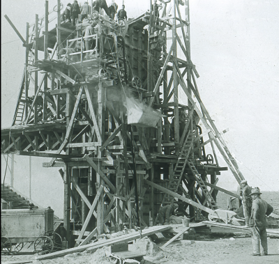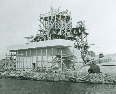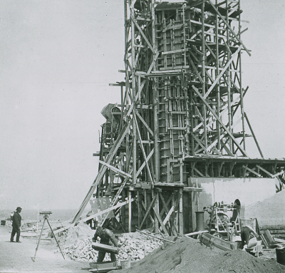 Monument van W.M. Dudok bij de Vlieter in aanbouw, 1...