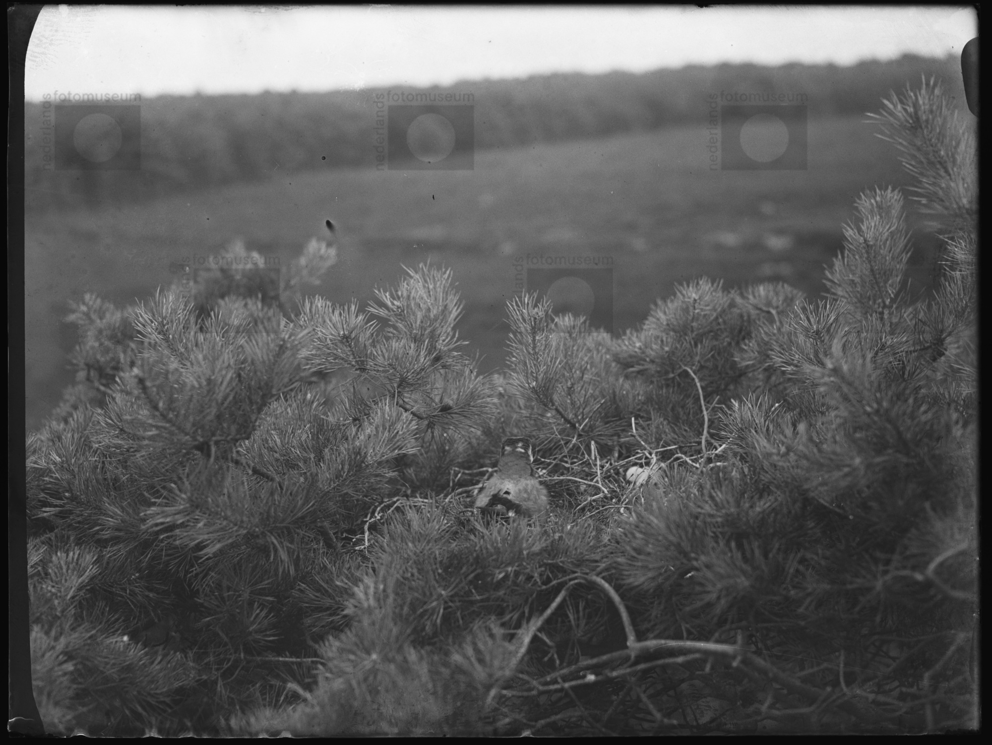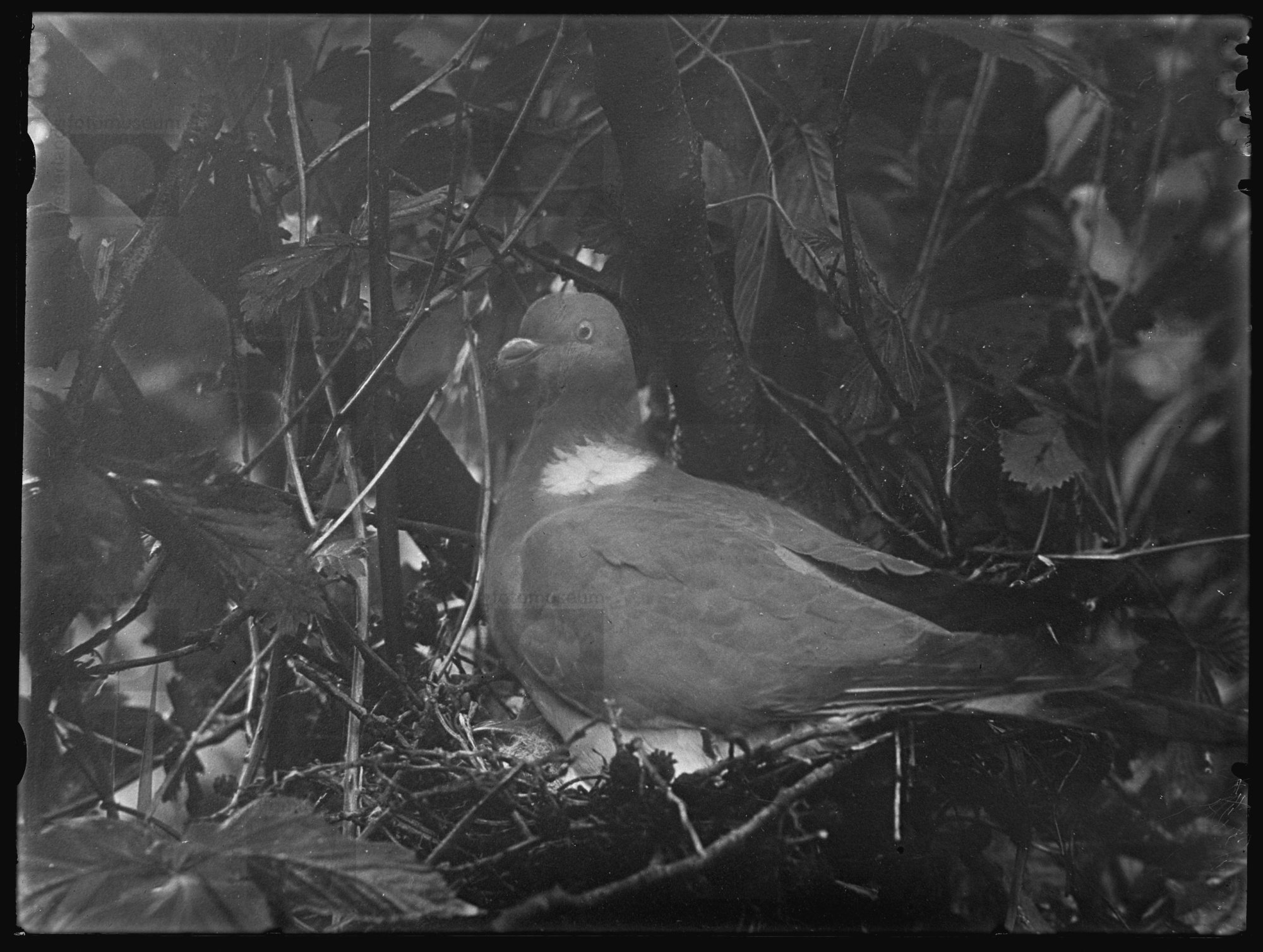 Houtduif op nest met jongen, Wanneperveen [1932] (re...