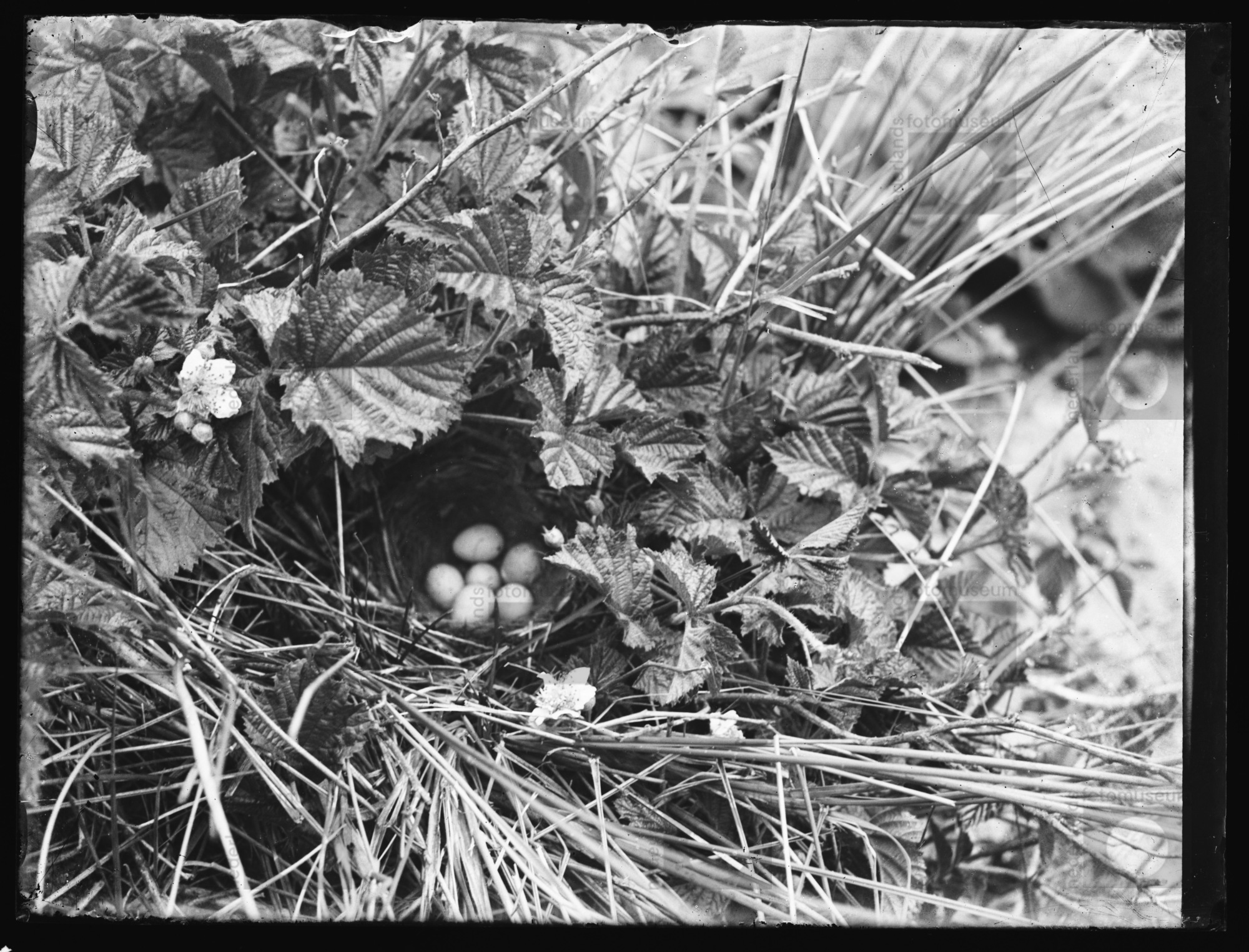 Nest van een (zang)vogel, [misschien Grasmus] (z.j.)
