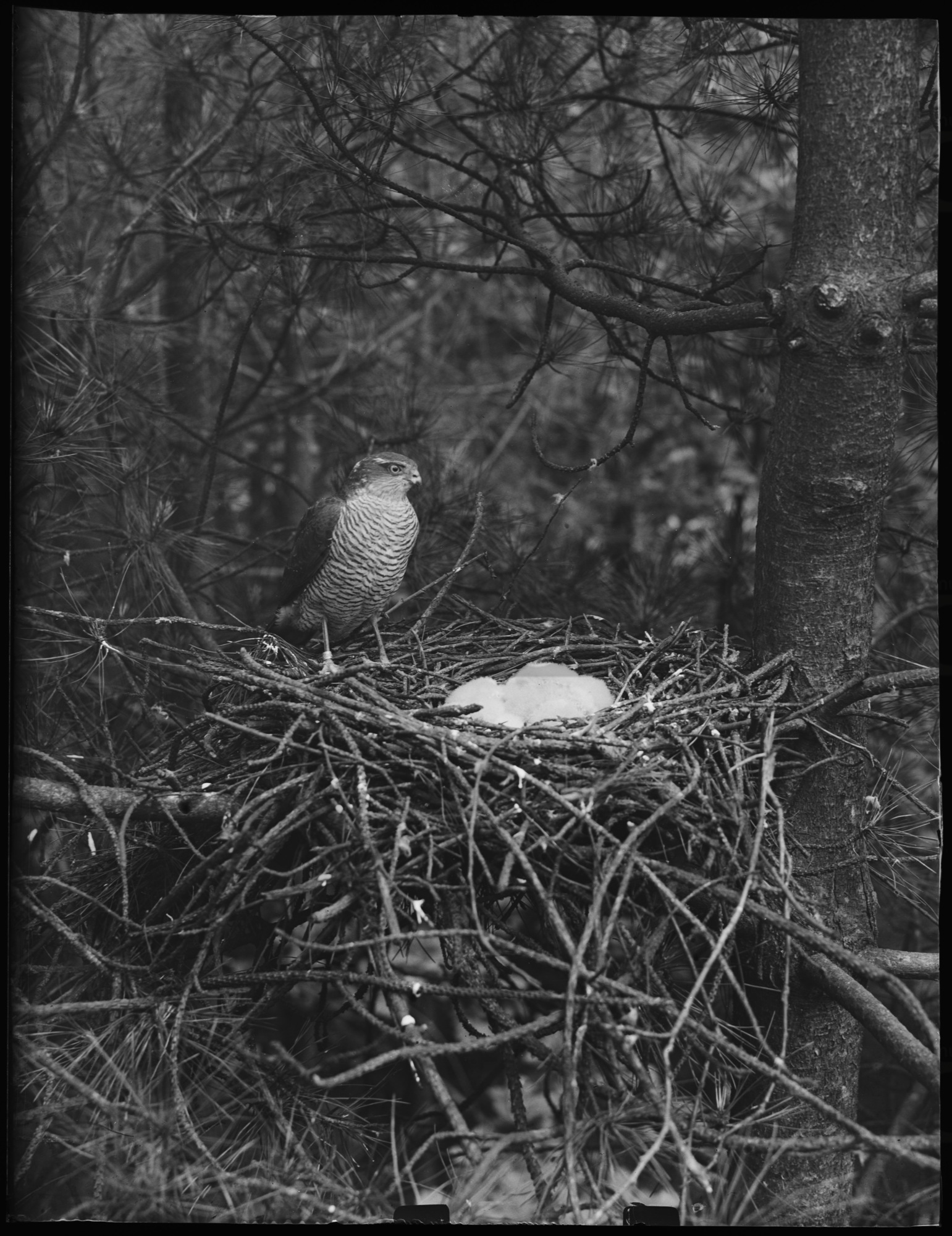 Boomvalk op nest met jongen, Planken Wambuis (1933)