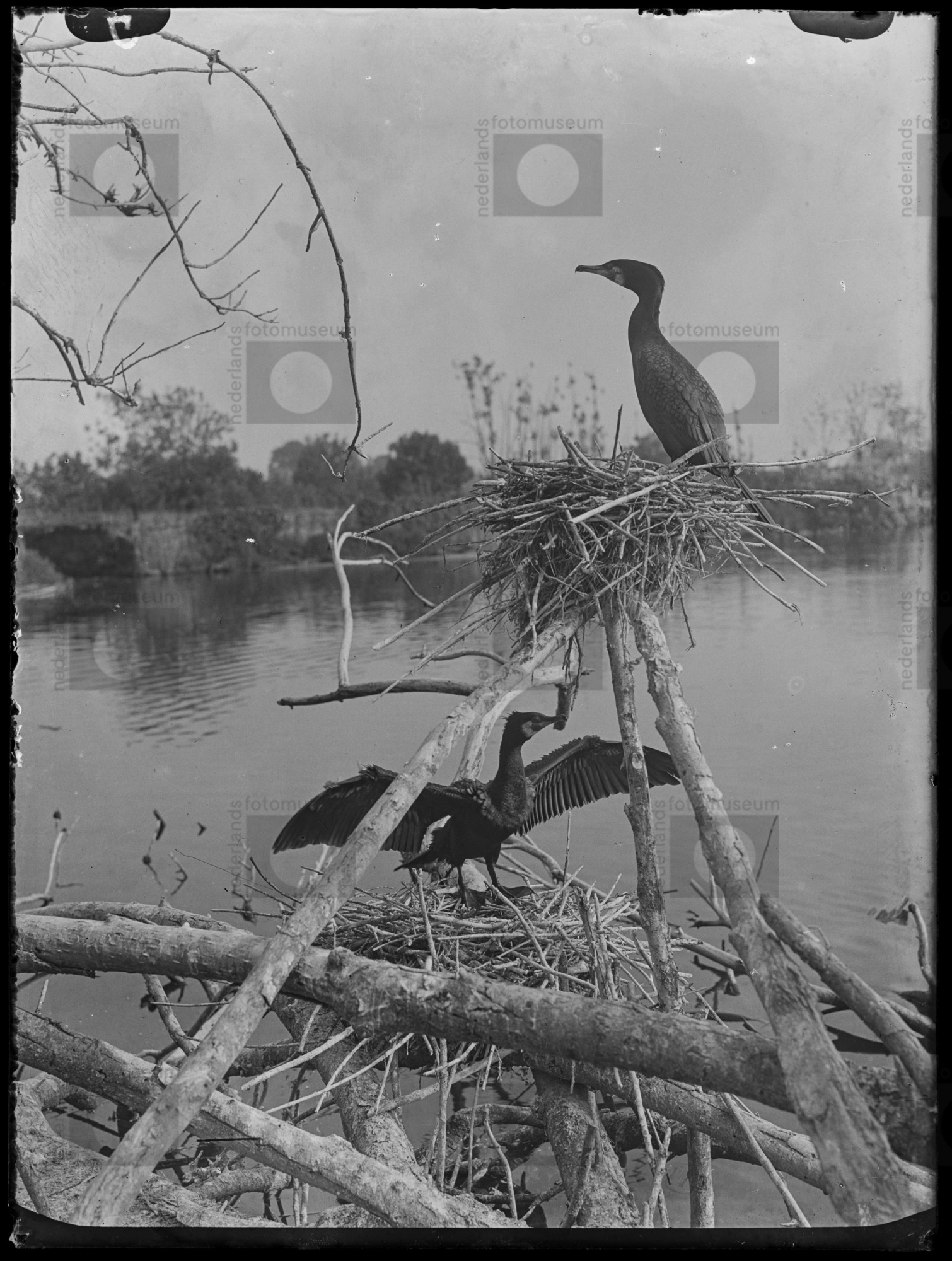 Aalscholvers in broedkolonie, Lekkerkerk (1931)