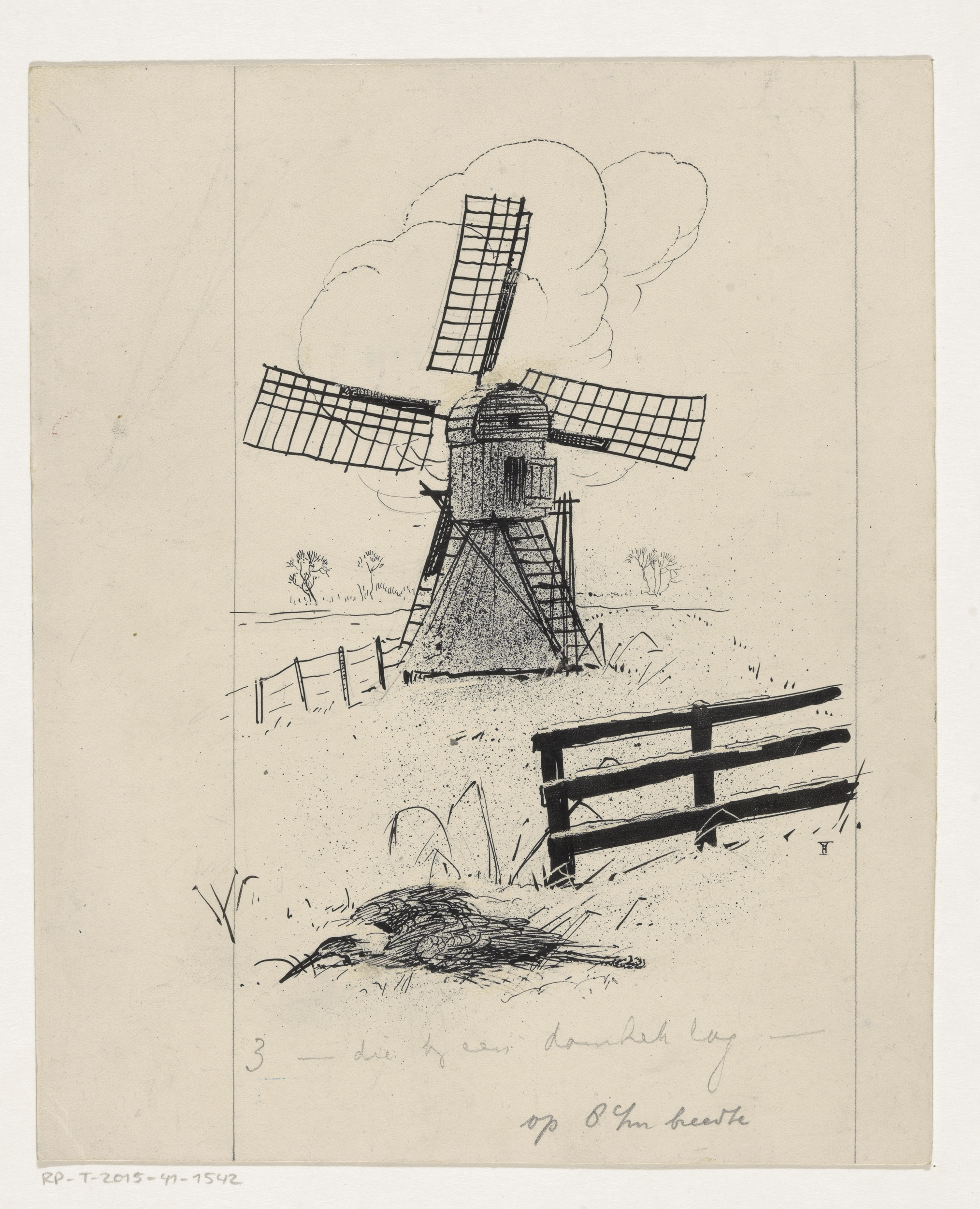 Vogel bij een molen
