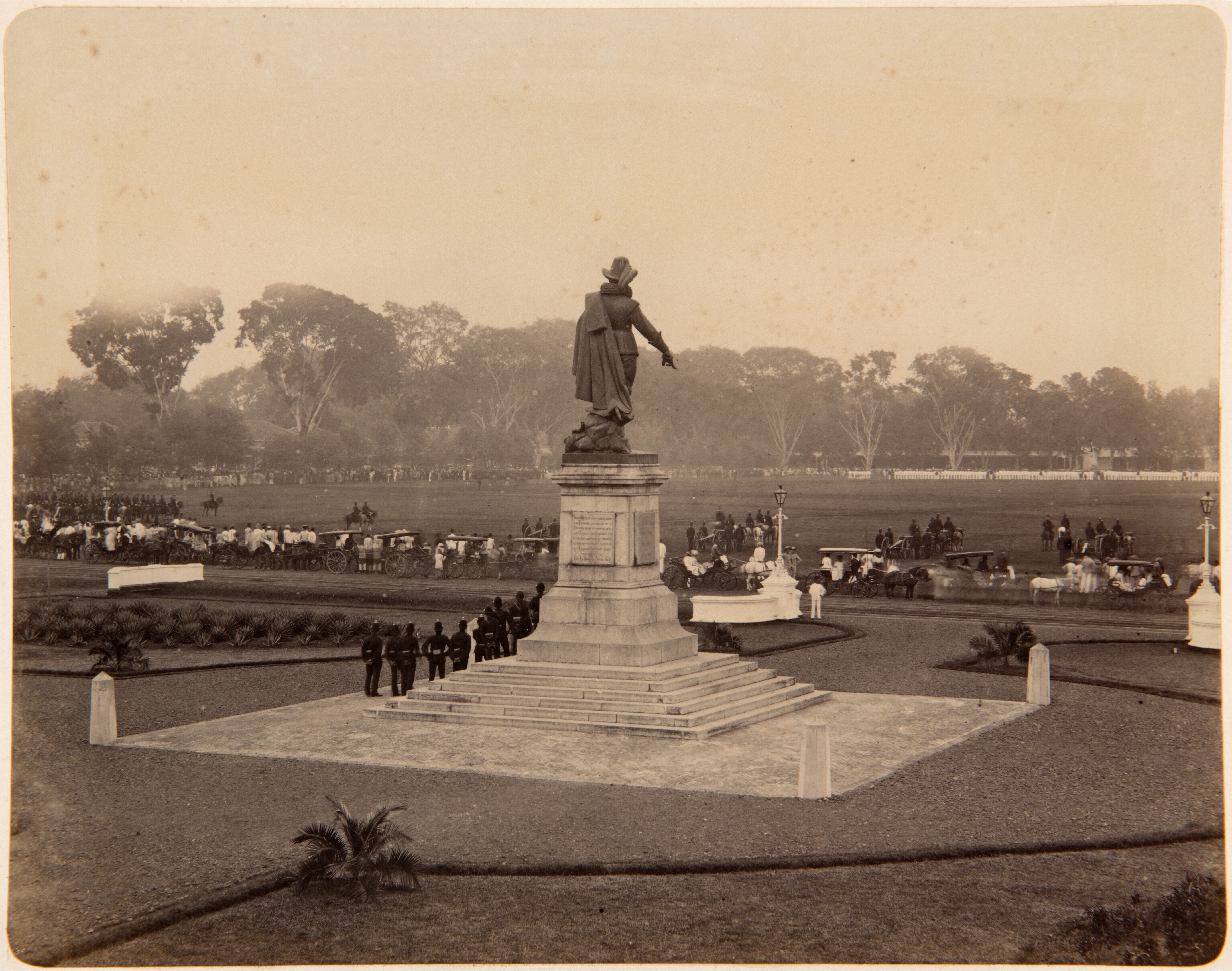 The statue of J.P. Coen and a military parade on Bat...