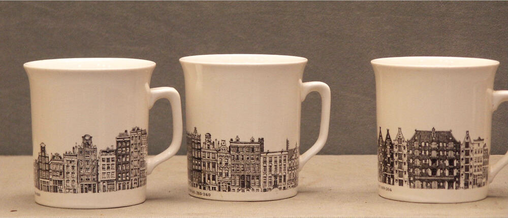 kop en schotel met decor van Amsterdamse grachten, g...
