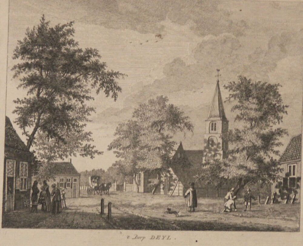 gravure voorstellende 't Dorp Deijl in de 18e eeuw