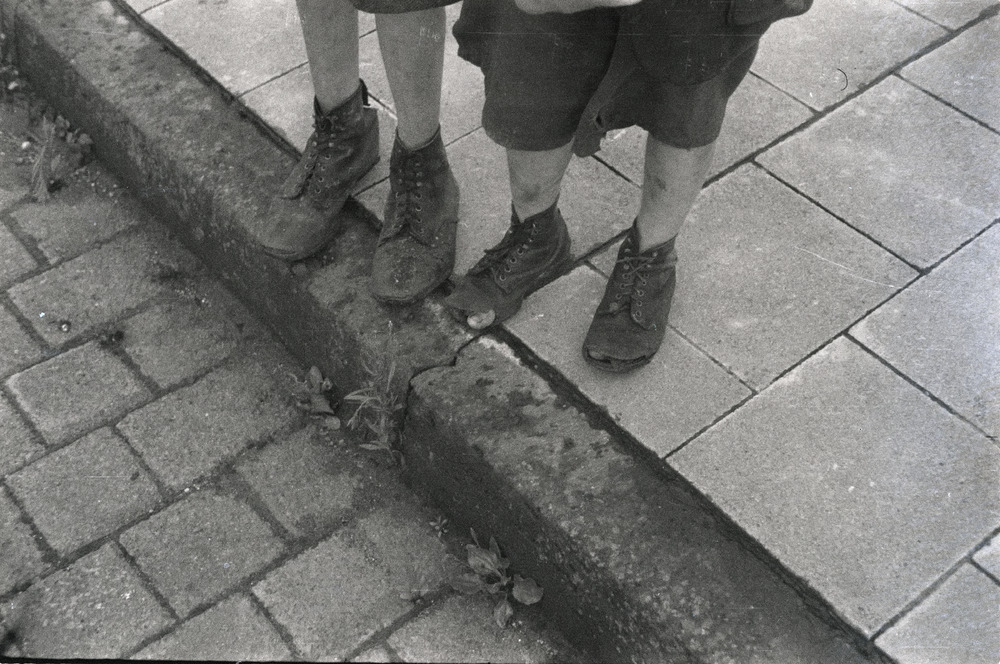 Twee jongens met afgetrapte schoenen