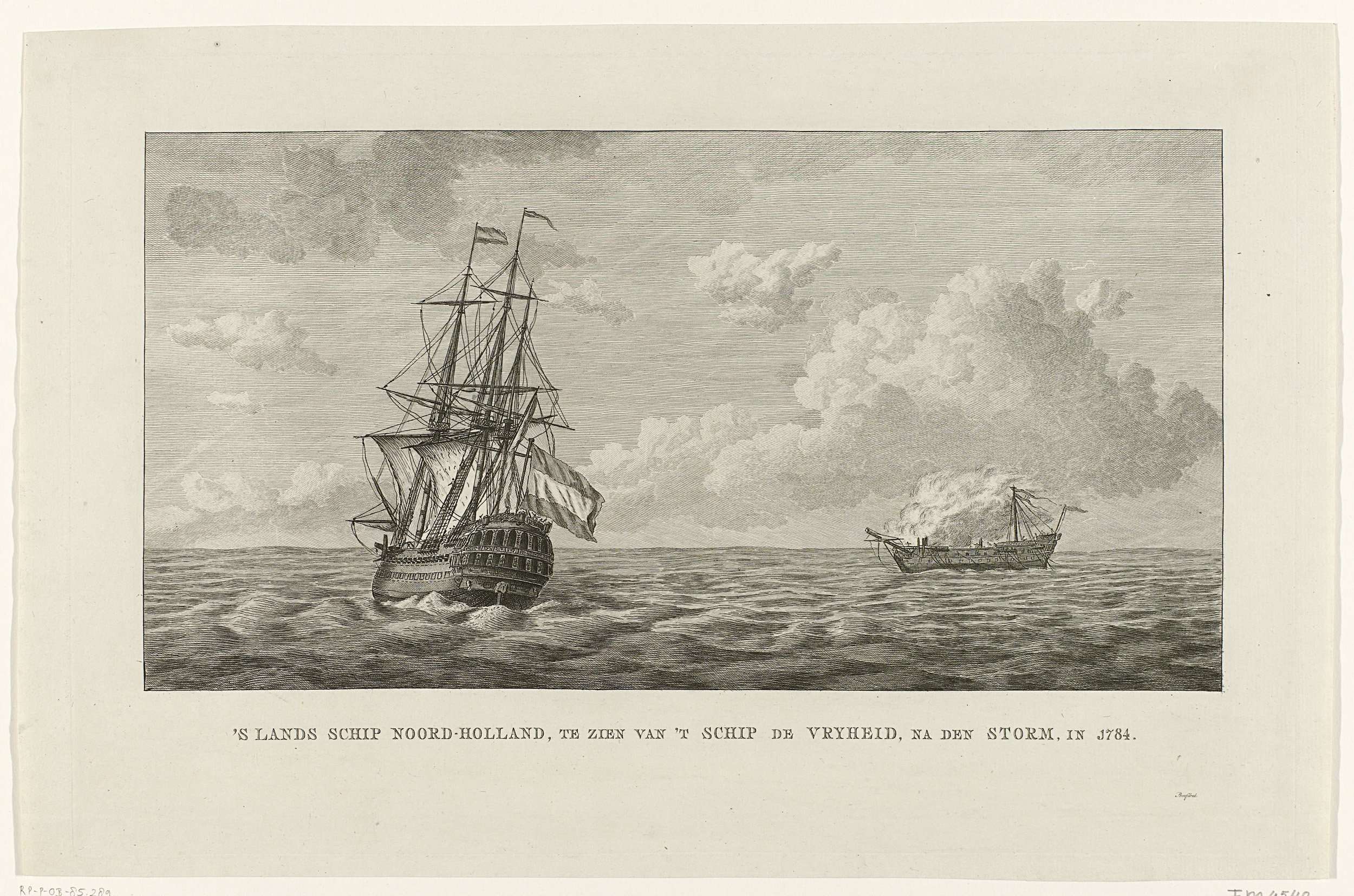 Schip Noord-Holland na de storm, 1784