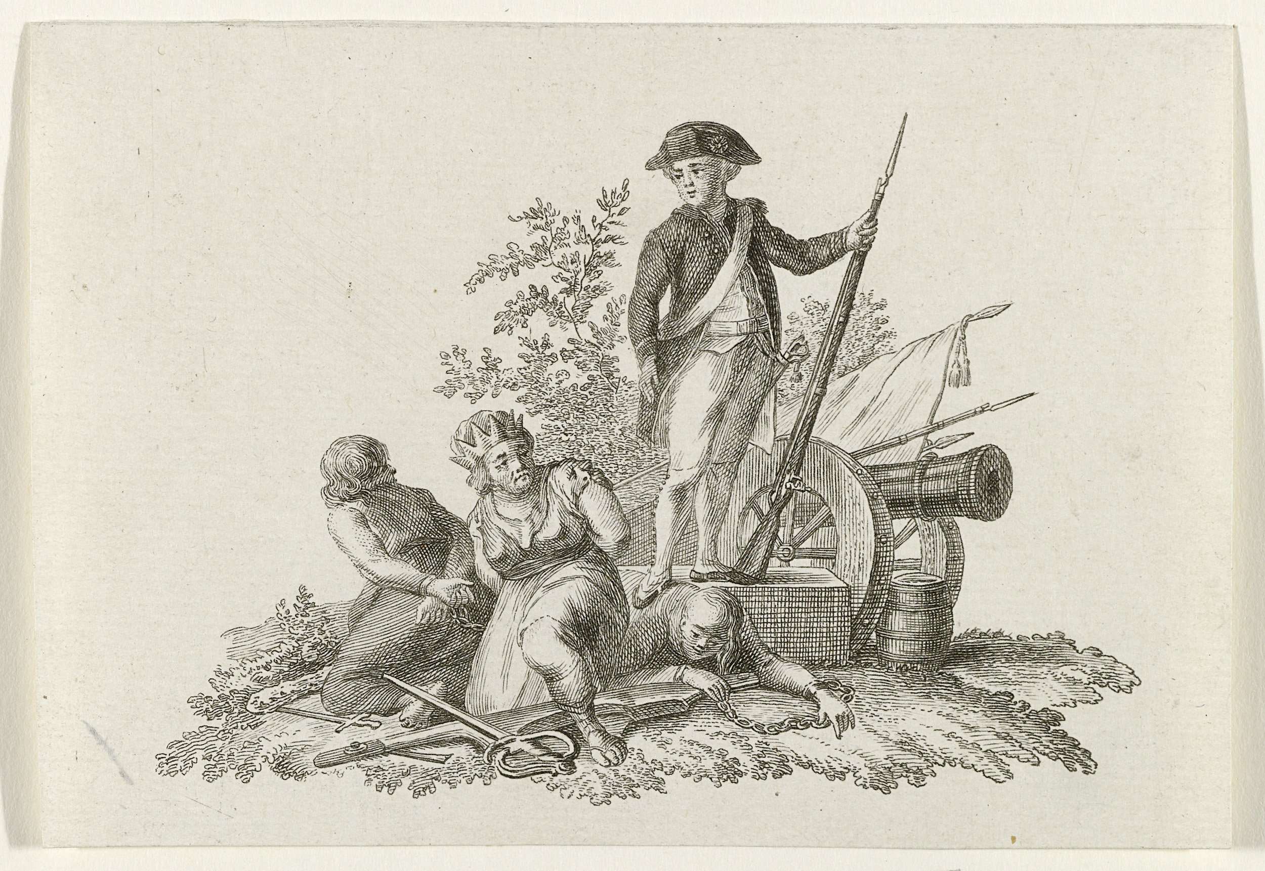 Vignet van een schutter die het Geweld vertreedt