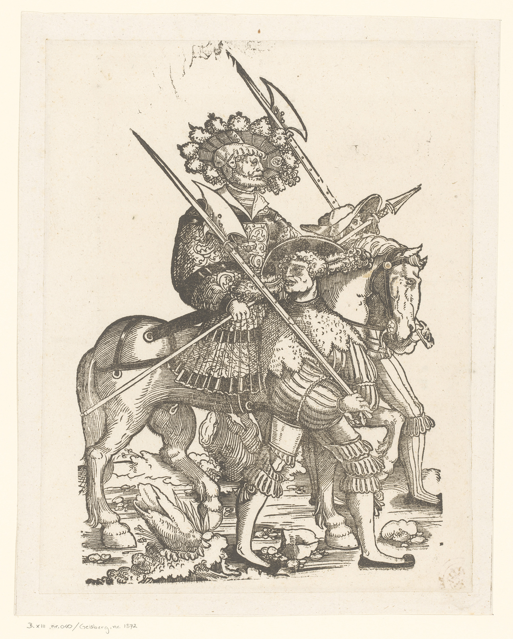 Officier te paard met twee voetsoldaten
