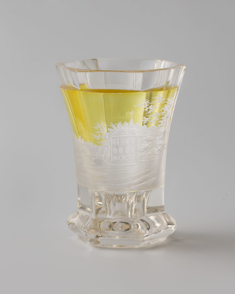 Boheems glas met voorstelling van huis Hoekelum
