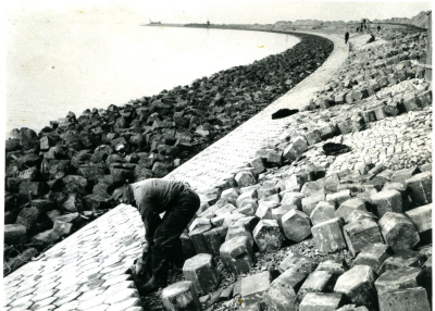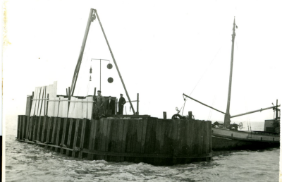 Het maken van zinkstukken voor de Afsluitdijk. Op de...